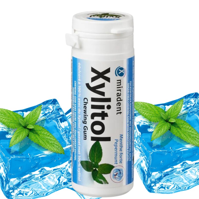 Froomo, маркетплейс професійної косметики та товарів для здоров'я\\Жувальна гумка з ксилітом Miradent Xylitol PEPPERMINT Перцева м’ята 30 шт, Жувальна гумка Мірадент
