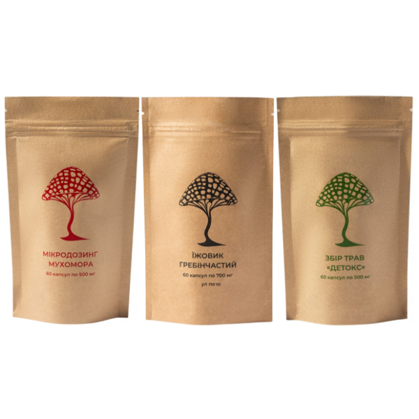 Froomo, маркетплейс професійної косметики та товарів для здоров'я\\Грибний комплекс Дідусь Мухомор Набір “Нова свідомість” (2 вида грибів + Збір трав “Детокс”) 60 + 60 + 60 капсул