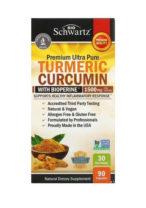 BioSchwartz, куркумін та біоперін Turmeric BioPerine, 500 мг 90 рослинних капсул