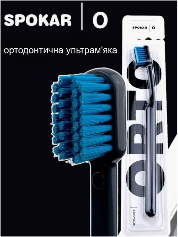 Froomo, маркетплейс професійної косметики та товарів для здоров'я\\Зубна щітка Spokar ORTO Ultrasoft дуже м'яка щітка для брекетів, ортодонтична, чорна