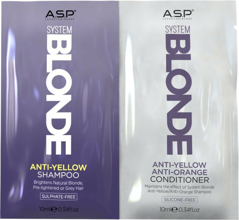 Froomo, маркетплейс професійної косметики та товарів для здоров'я\\Набір пробників шампуню і кондиціонера для нейтралізації жовтих відтінків System Blonde Anti-Yellow Sachet