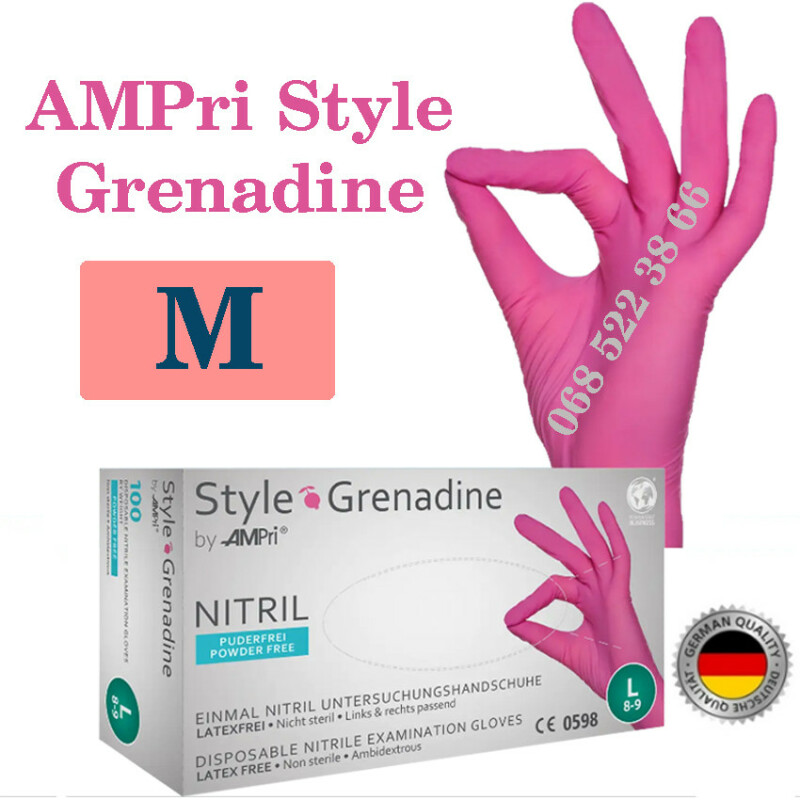 Рукавиці нітрилові рожевий AMPri Style Grenadine розмір M, щільність 4г, уп.100 шт