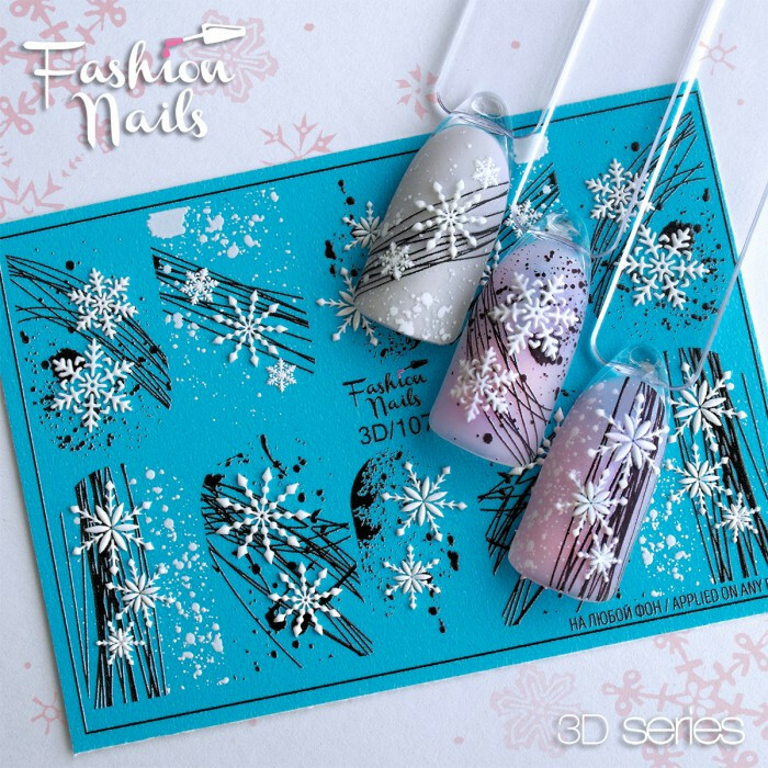 Froomo, маркетплейс професійної косметики та товарів для здоров'я\\Сніжинки білі наклейки слайдер для нігтів арт.3D/107
