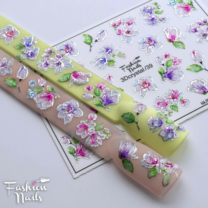 Froomo, маркетплейс професійної косметики та товарів для здоров'я\\Кришталевий Слайдер Дизайн 3D Квіточки Водні Наклейки для дизайну нігтів Fashion Nails 3D/39