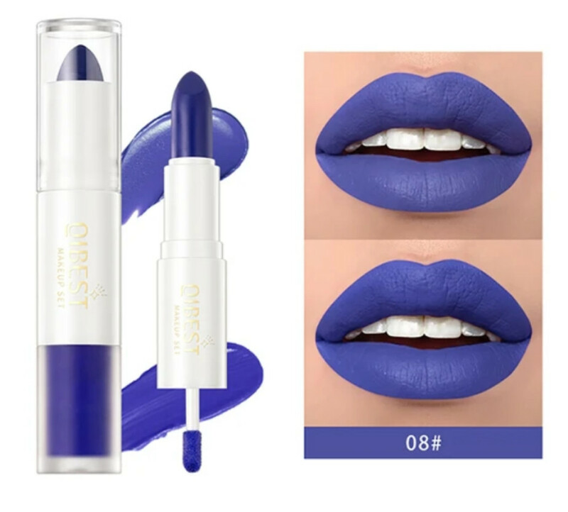 Губна помада 2-в-1 QiBEST No8 Lip Gloss and Lipstick Синя водостійка матова