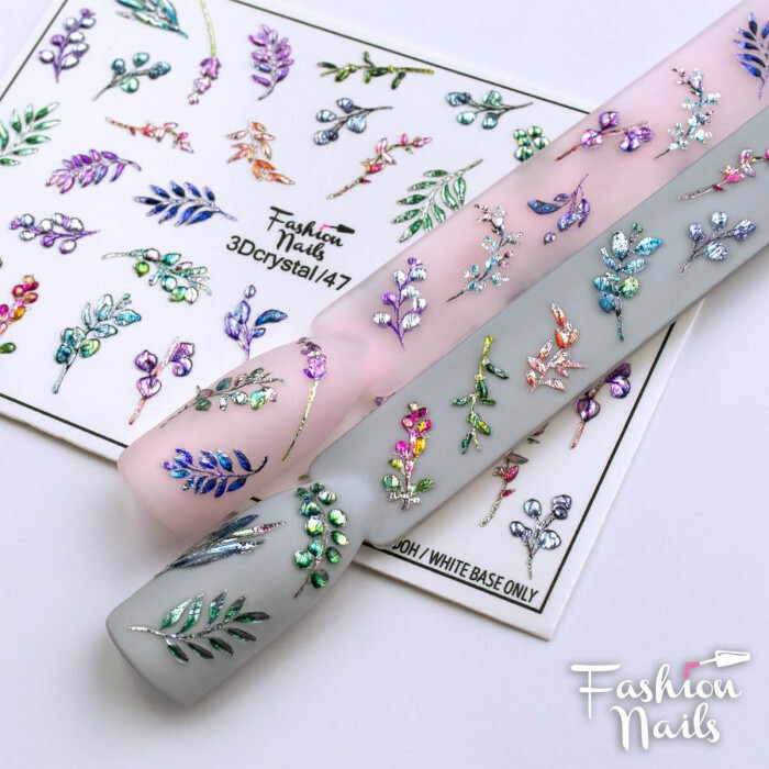 Froomo, маркетплейс професійної косметики та товарів для здоров'я\\Кришталевий Слайдер Дизайн 3D Листочки Рослини водні наклейки для нігтів Fashion Nails 3DCrystal/47
