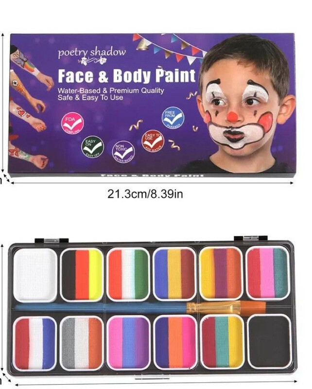 Аквагрим для бодіарту Poetry Shadow набір 32 кольори та 2 пензлики