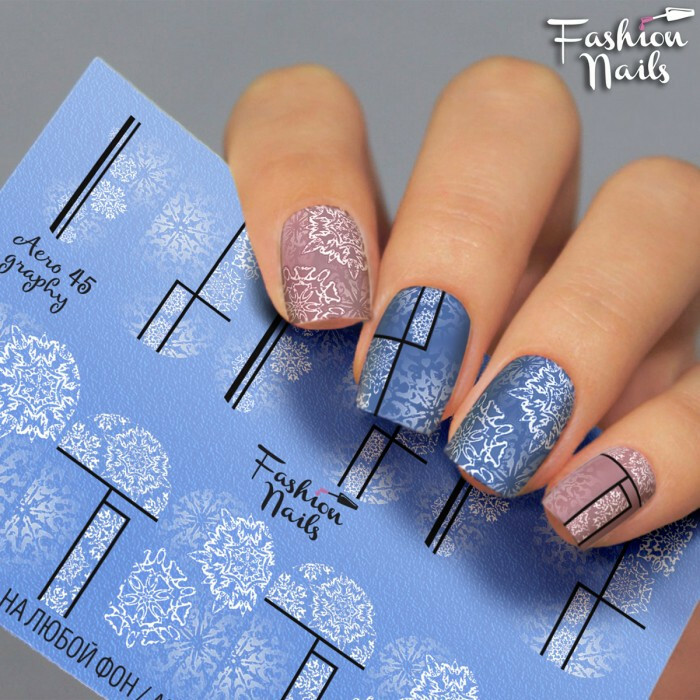 Froomo, маркетплейс професійної косметики та товарів для здоров'я\\Зимовий слайдер дизайн Сніжинки - Новорічні наклейки для нігтів арт.Aero45 Чорно-білі слайдер дизайни