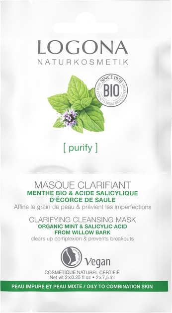 Очищуюча біо-маска для жирної та комбінованої шкіри М'ята та саліцилова кислота з кори верби Clarifying Cleansing Mask