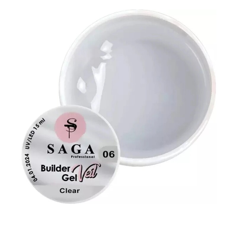 Гель для нарощування SAGA Professional Builder Gel Veil №06 Clear 15 мл, 15.0