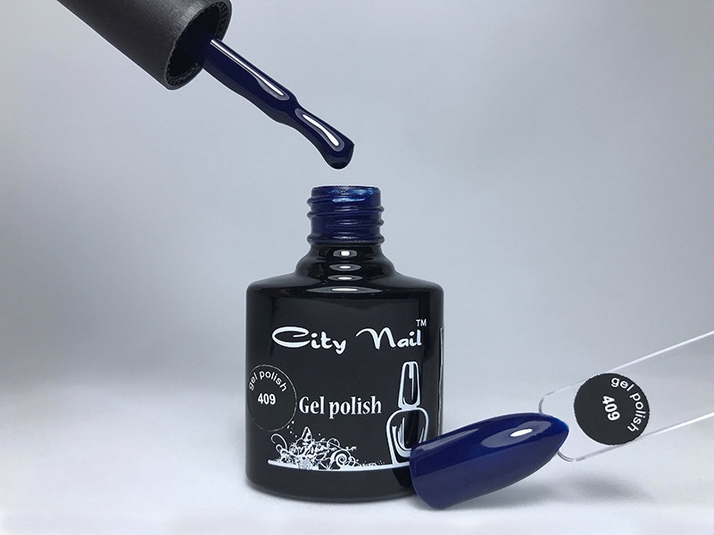 Гель-лак CityNail 409 синій - Сині гель лаки - Гель лак кольору індиго - Професійні лаки для нігтів 10