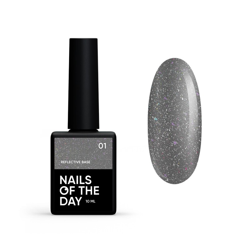 Froomo, маркетплейс професійної косметики та товарів для здоров'я\\База камуфлююча світловідбиваюча Nails NAILSOFTHEDAY Reflective base 01 з шиммером срібні та рожеві блискітки 10 мл, 10.0