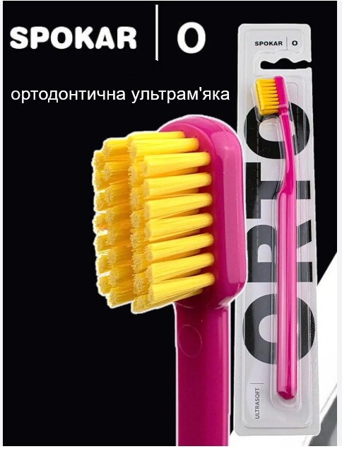 Froomo, маркетплейс професійної косметики та товарів для здоров'я\\Зубна щітка Spokar ORTO Ultrasoft дуже м'яка щітка для брекетів, ортодонтична, рожева