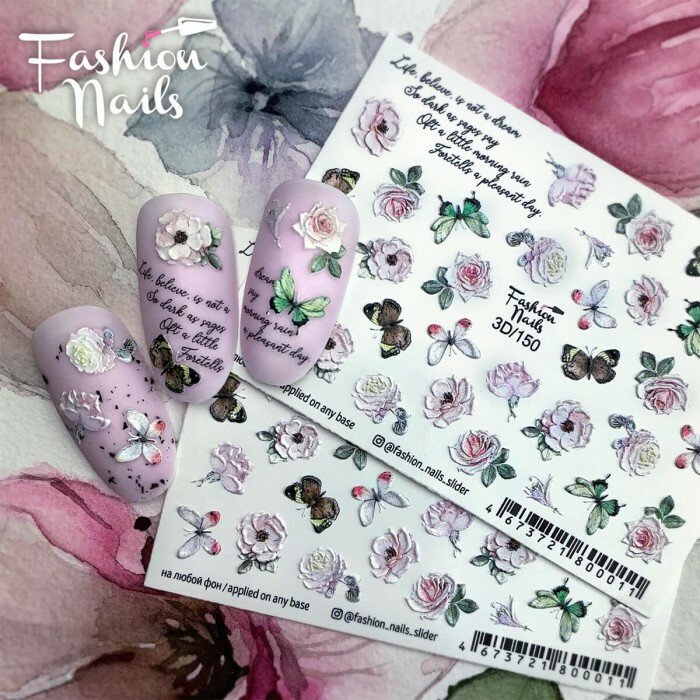 Froomo, маркетплейс професійної косметики та товарів для здоров'я\\3D дизайн Слайдер для нігтів - Слайдери водні наклейки на КВІТИ, Наклейки метелики на нігті Fashion Nails 3D/150