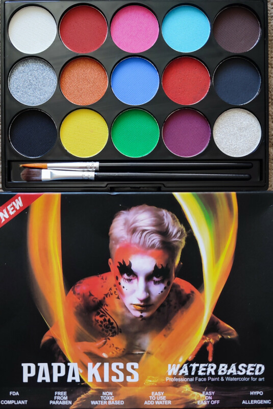 Froomo, маркетплейс професійної косметики та товарів для здоров'я\\Аквагрим Papa Kiss Water Based набір 15 кольорів + 2 пензлі AC-8005