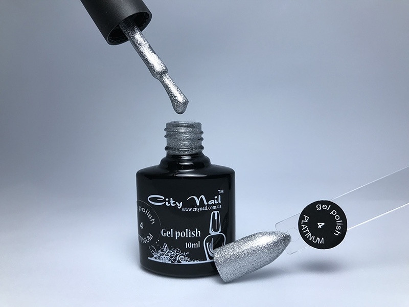 Froomo, маркетплейс професійної косметики та товарів для здоров'я\\Гель-лак глиттерный City Nail PLATINUM №4 срібло з блискітками 6мл арт.ГлPl4-6