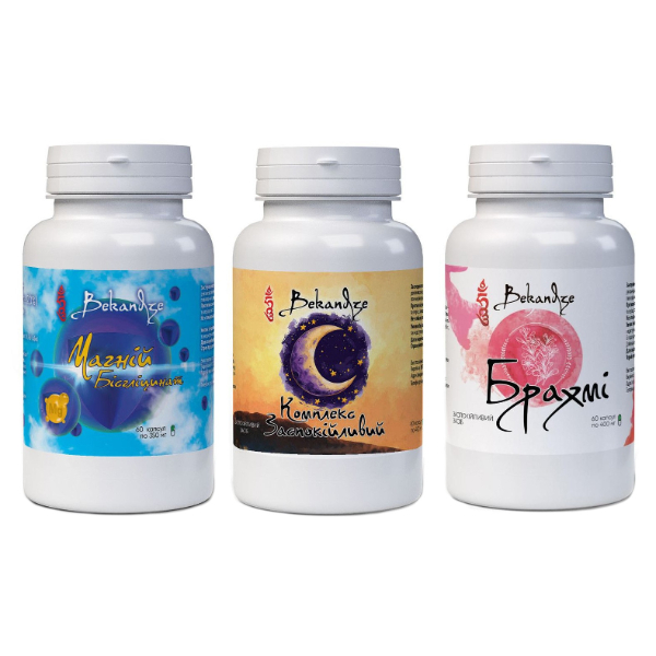 Комплекс для сну Bekandze Магній бісгліцинат + Комплекс Заспокійливий + Брахмі 60+60+60 Caps