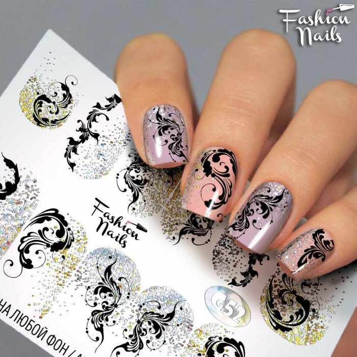 Слайдер-дизайн Fashion nails - наклейка на нігті - мереживо, вензелі, візерунки