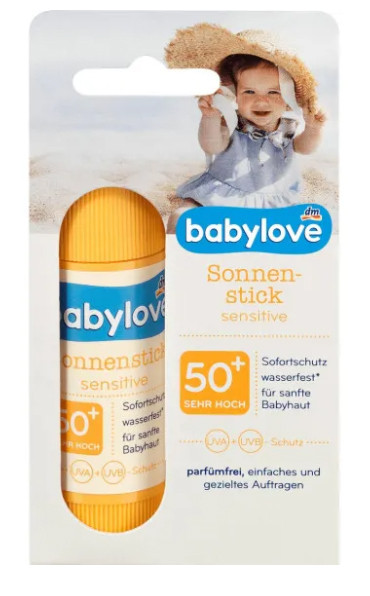 Сонцезахисний стик Sensitive SPF 50+ babylove 20 г