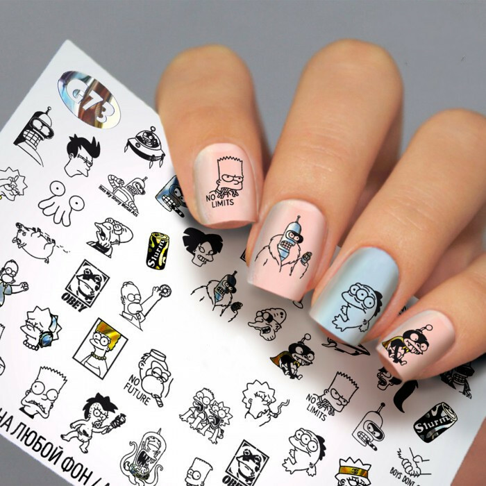 Froomo, маркетплейс професійної косметики та товарів для здоров'я\\Водні наклейки для нігтів Сімпсони ( Слайдер дизайн для нігтів ) Fashion Nails G73