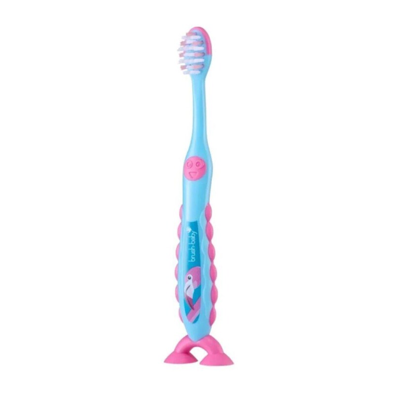 Froomo, маркетплейс професійної косметики та товарів для здоров'я\\Дитяча зубна щітка Brush Baby FlossBrush 3-6 років Фламінго, Зубна щітка Браш Бейбі ФлосБраш від 3 до 6 років