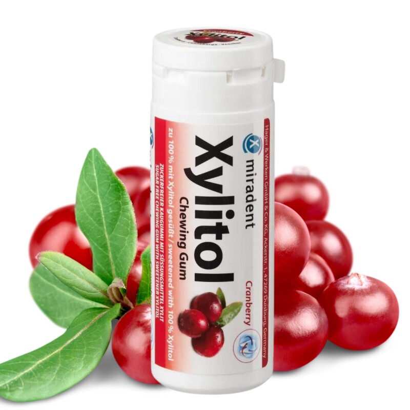 Froomo, маркетплейс професійної косметики та товарів для здоров'я\\Жувальна гумка з ксилітом Miradent Xylitol CRANBERRY Журавлина 30 шт, Жувальна гумка Мірадент