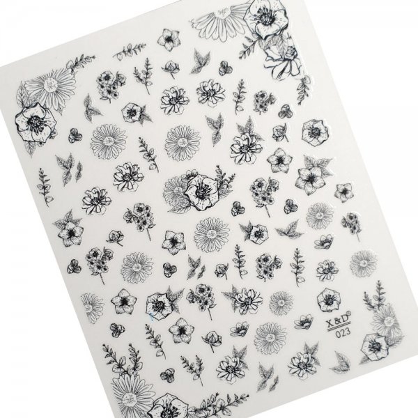 Froomo, маркетплейс професійної косметики та товарів для здоров'я\\Наклейки на нігті Чорно-білі квіти