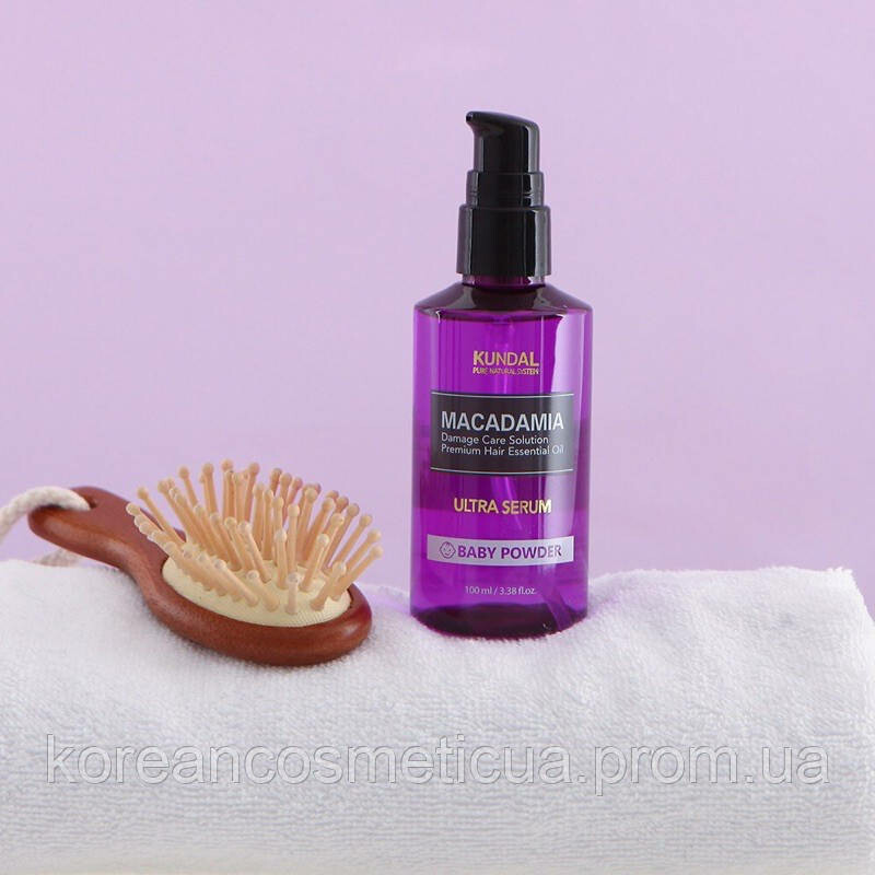 Froomo, маркетплейс професійної косметики та товарів для здоров'я\\Сироватка для волосся зволожуюча "Дитяча присипка" Kundal Macadamia Ultra Hair Serum Baby Powder 100ml