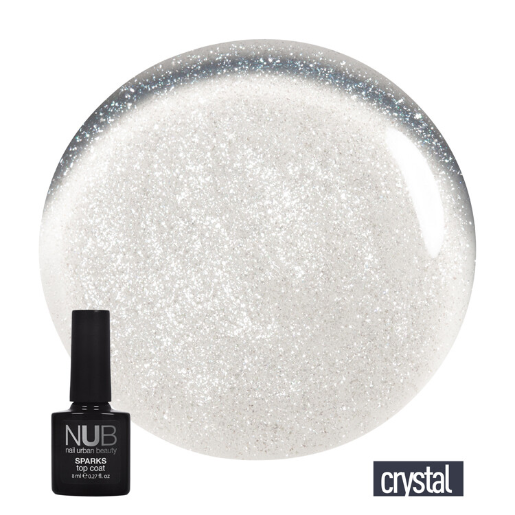 Froomo, маркетплейс професійної косметики та товарів для здоров'я\\Закріплювач із шимером не має липкого шару NUB Sparks Top Coat Crystal, 8 ml