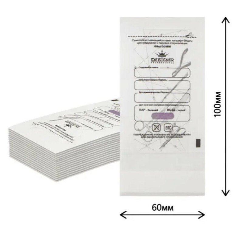 Крафт-пакет для стерилізації інструментів білі з індикатором Designer Professional 60х100 мм, 100 шт.