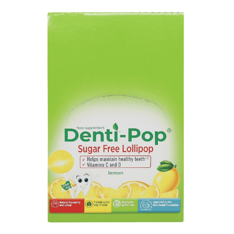Froomo, маркетплейс професійної косметики та товарів для здоров'я\\Льодяники Denti Pop зі смаком лимону з вітамінами і ксилітом без цукру 40 шт