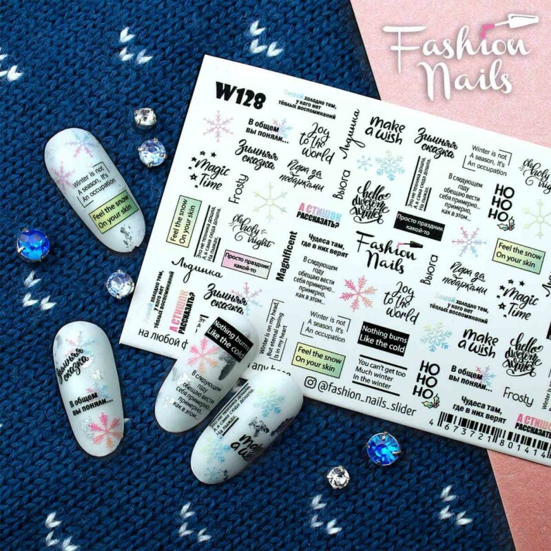 Froomo, маркетплейс професійної косметики та товарів для здоров'я\\Новорічні наклейки для нігтів - Слайдер-дизайн Зима та Новий Рік W128