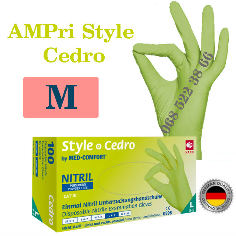 Froomo, маркетплейс професійної косметики та товарів для здоров'я\\Рукавиці нітрилові цедра AMPri Style Cedro розмір M, щільність 4г, уп.100 шт