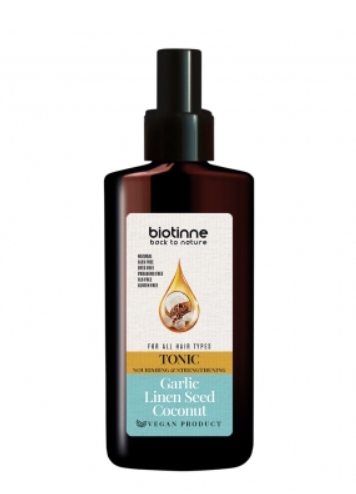 Тонік-спрей для волосся Biotinne з часником, насінням льону та кокосовою олією, 150 мл