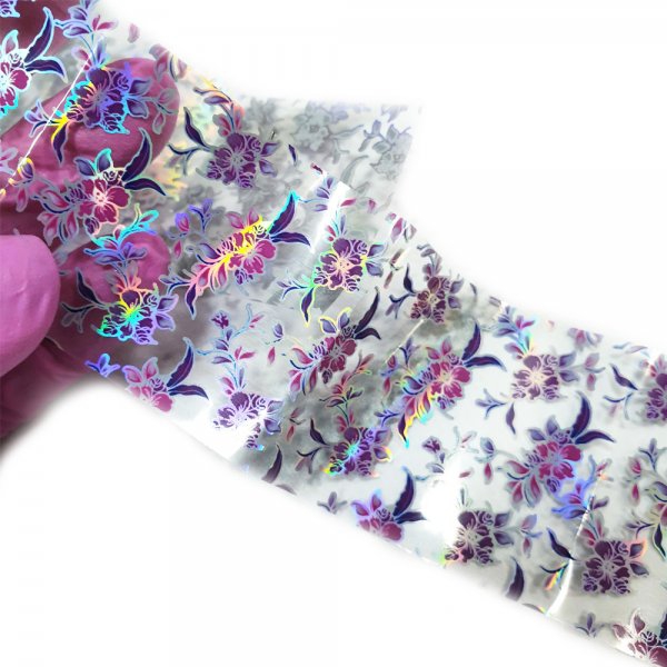 Фольга для нігтів з орнаментом Голограмні квіти