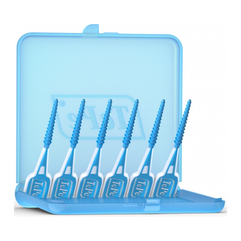 Froomo, маркетплейс професійної косметики та товарів для здоров'я\\Зубочистки силіконові TePe EasyPick M/L з кейсом, 12 шт Блакитні зубочистки для зубів