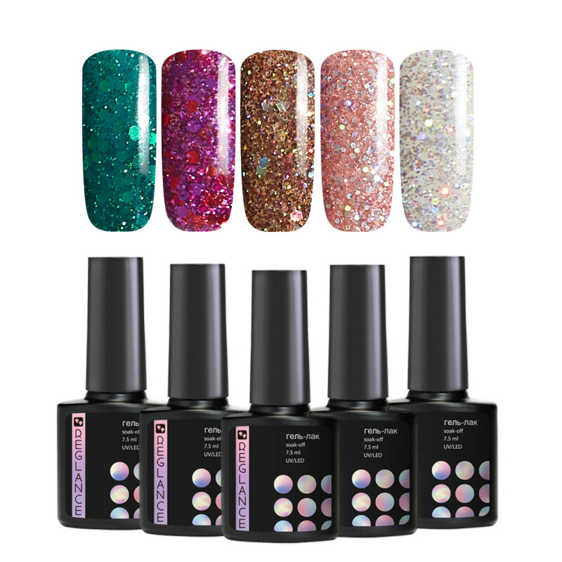 Froomo, маркетплейс професійної косметики та товарів для здоров'я\\Набір 5 шт гель-лаки для нігтів Reglance з блискітками 7.5 мл
