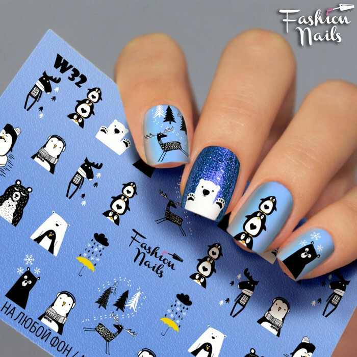 Froomo, маркетплейс професійної косметики та товарів для здоров'я\\Новорічні наклейки для нігтів - Слайдер -дизайн Новий рік,Олені, Пінгвін, Білий ведмідь арт.W32