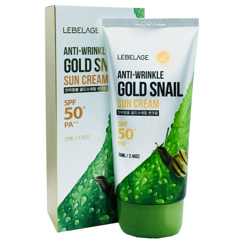 Froomo, маркетплейс професійної косметики та товарів для здоров'я\\Сонцезахисний крем з муцином равлика Lebelage Anti-Wrinkle Gold Snail Sun Cream SPF50+/PA+++ 70 мл