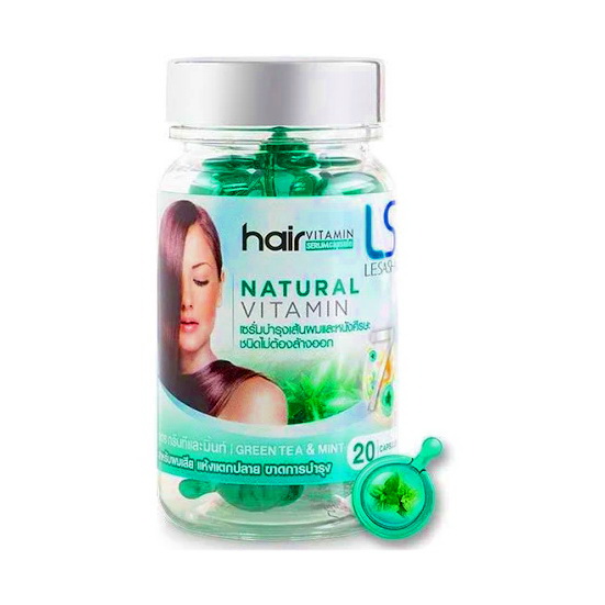 Тайські капсули для волосся Lesasha Hair Serum Vitamin з зеленим чаєм і м'ятою в баночці, 20 шт